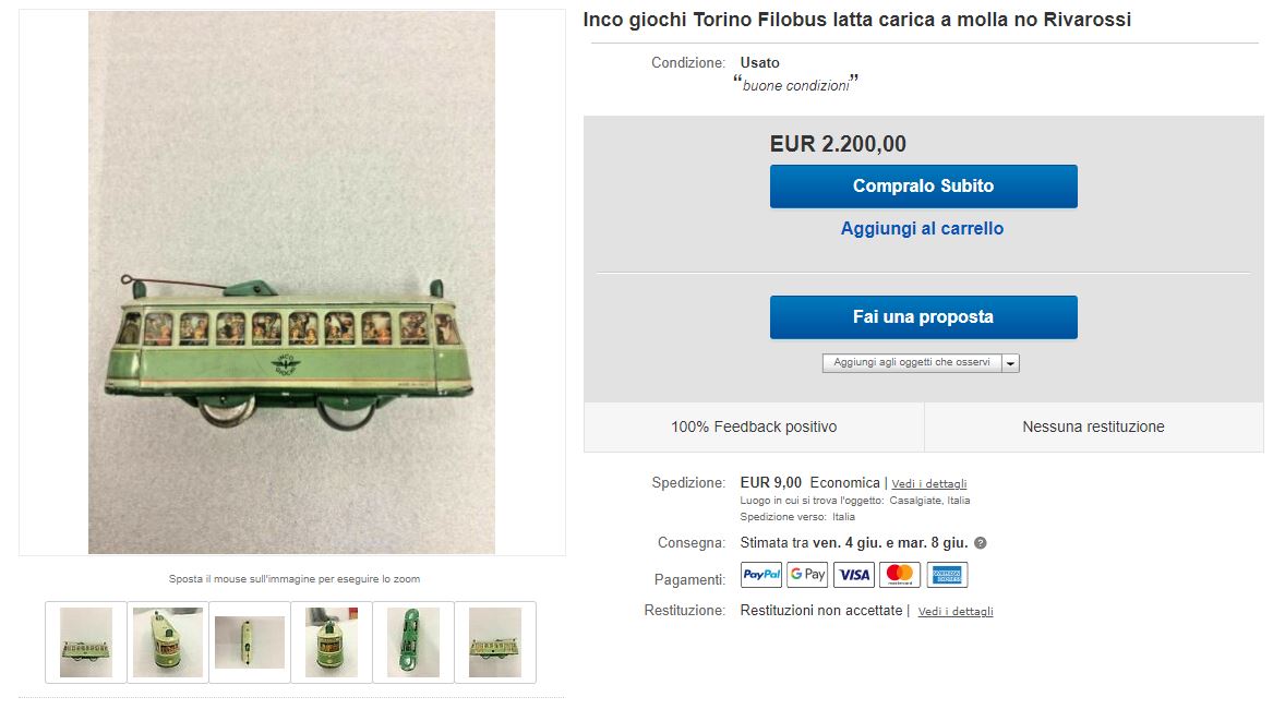 Tanto per farci 2 risate, questo è un annuncio attualmente su Ebay (tra l'altro, è un tram, non un filobus):
